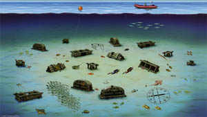 Municipio Pasito Blanco Acceso desde embarcación, Arrecife artificial creado por la universidad de Las Palmas para la regeneración de vida marina en la zona.