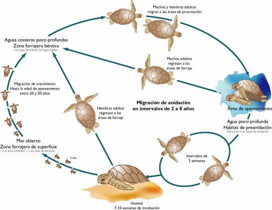 Ciclo de vida de tortugas – Adaptado por Didiher Chacón basado en Lutz y Musick (1996).