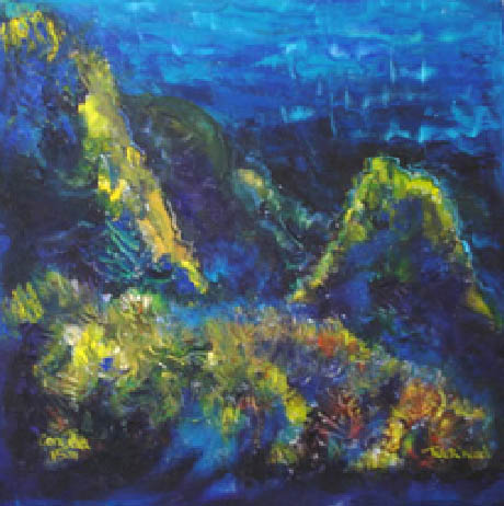 Influenciada por la luz del Mediterráneo, y en particular por la del mar y del cielo, está combinando su pasión por el buceo con sus trabajos, pintando algunas obras (con óleos) mientras bucea, y otras inspiradas por la luz y ambiente del mundo submarino.