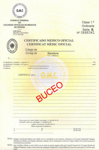 Al igual que comprobamos que nuestros compañeros de buceo tienen la certificación necesaria para efectuar este deporte no estaría de mas preguntarles si están en posesión de un certificado medico vigente. Esto nos evitara sustos e inseguridades, así como el que uno mismo u otro compañero del grupo se quede en tierra por que cuando la policía se lo pidió carecía de el.
